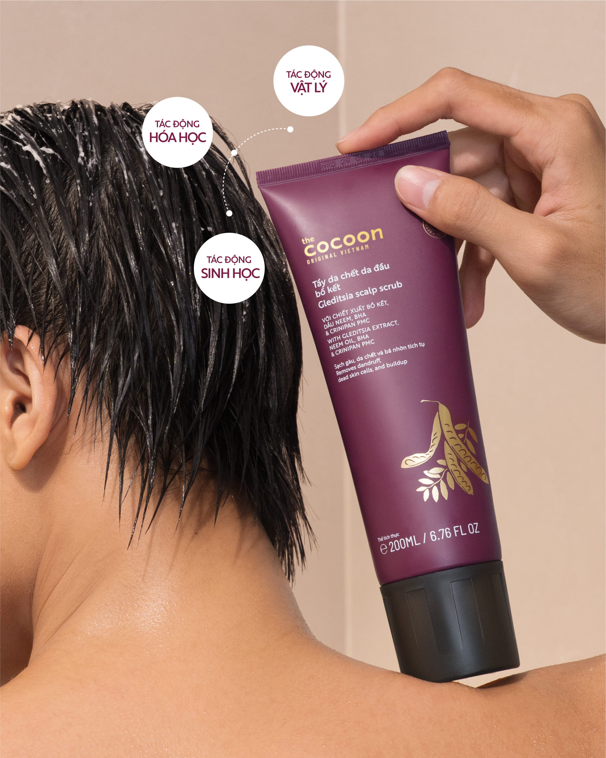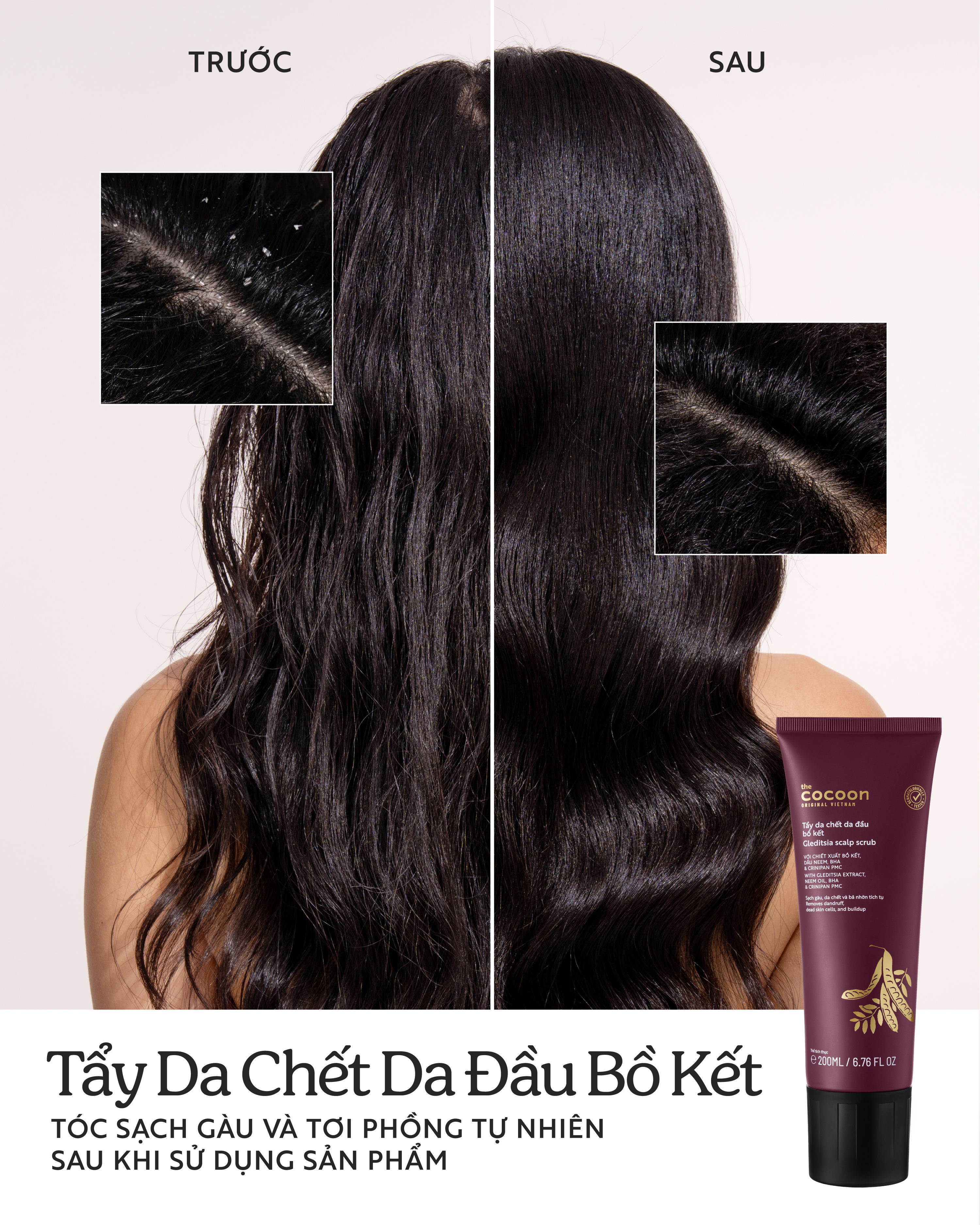 Tẩy da chết da đầu bồ kết là giải pháp làm sạch sâu da đầu từ chiết xuất bồ kết Việt Nam, hạt muối biển cùng BHA và Crinipan PMC Green. Công thức kết hợp cơ chế làm sạch vật lý, hoá học và sinh học giúp làm sạch gàu, loại bỏ da chết và bã nhờn tích tụ lâu ngày trên da đầu, cho da đầu thông thoáng, giúp giảm ngứa và giảm tiết dầu nhờn.