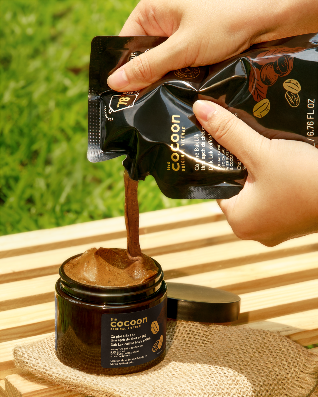 Vietnam's advantage as the second-largest coffee exporter in the world allows Cocoon to proudly utilize this exclusive resource to bring you exfoliating skincare products. Instead of plastic microbeads, our products contain only finely ground and carefully sieved coffee scrub particles. This ensures the gentle removal of dead skin cells, rejuvenating your skin without any harm. Our research on the caffeine and antioxidants in coffee beans shows they can quickly improve dull skin. This leaves your skin firm, smooth, and energized, giving it a fresh and revitalized appearance after just one use.