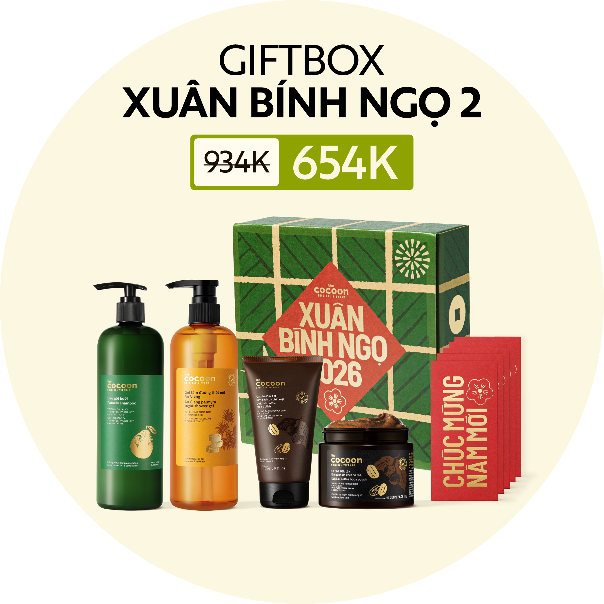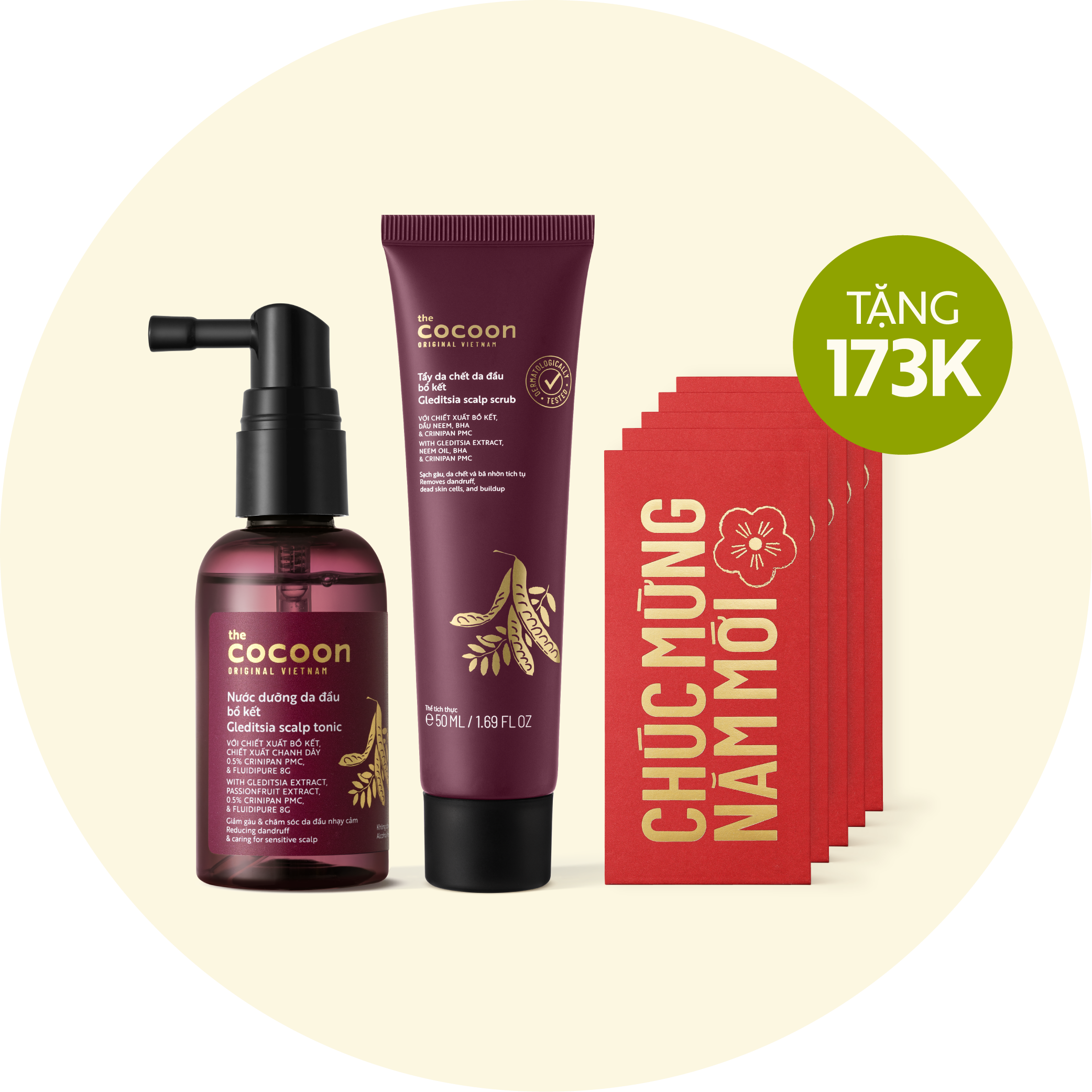 Tặng 05 bao lì xì Cocoon + 01 Tẩy Da Chết Da Đầu Bồ Kết 50ml + 01 Nước Dưỡng Da Đầu Bồ Kết 50ml cho đơn hàng từ 249K