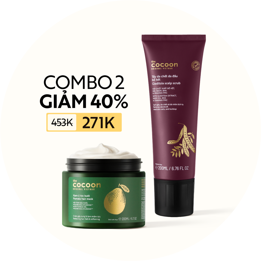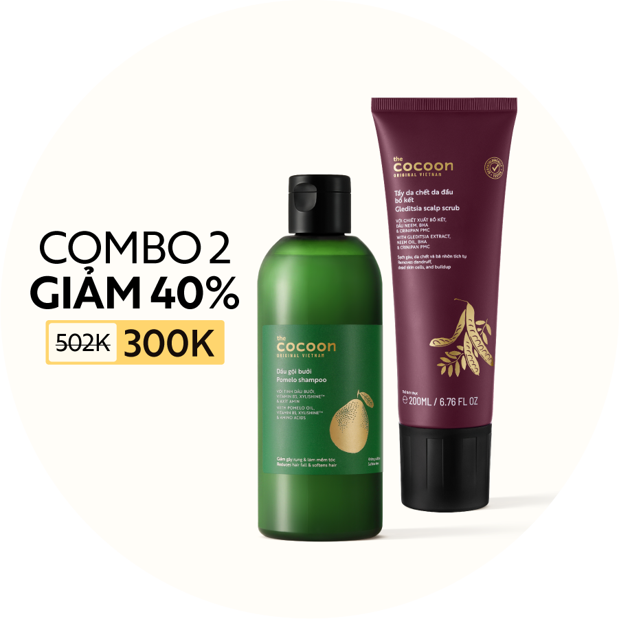 COMBO Tẩy da chết da đầu bồ kết Cocoon 200ml + Dầu gội bưởi giảm gãy rụng 310ml