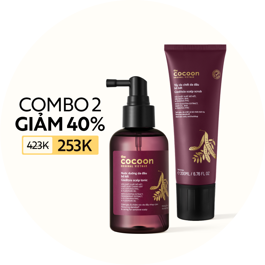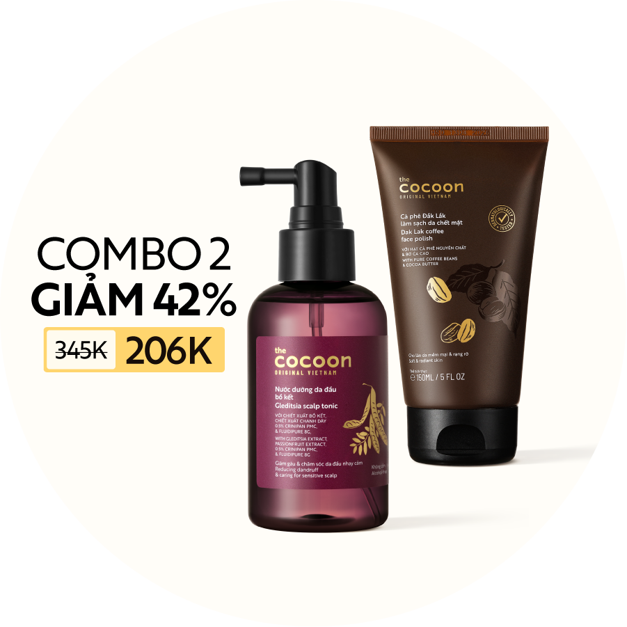 COMBO Nước dưỡng da đầu bồ kết 140ml + Tẩy da chết mặt cà phê Đắk Lắk Cocoon 150ml
