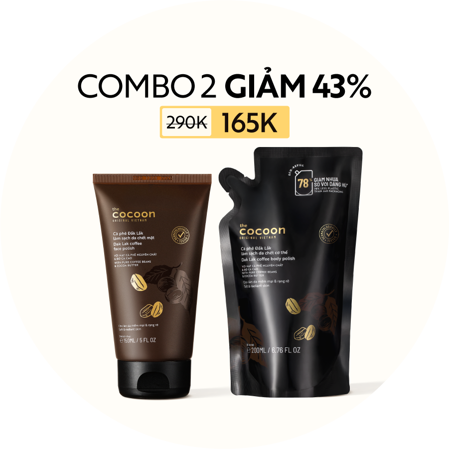 COMBO Cà phê Đắk Lắk làm sạch da chết mặt 150ml + Túi refill tẩy da chết cà phê 200ml