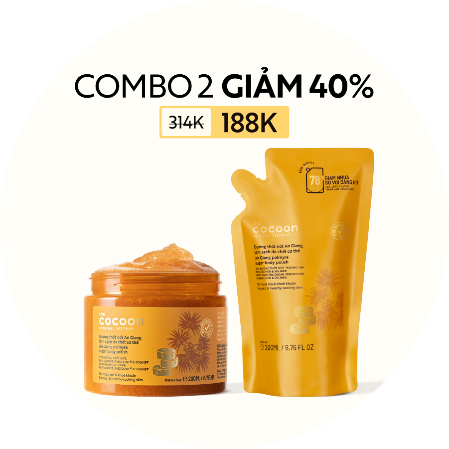 COMBO Tẩy da chết cơ thể đường thốt nốt An Giang 200ml + Túi refill tẩy da chết đường thốt nốt 200ml