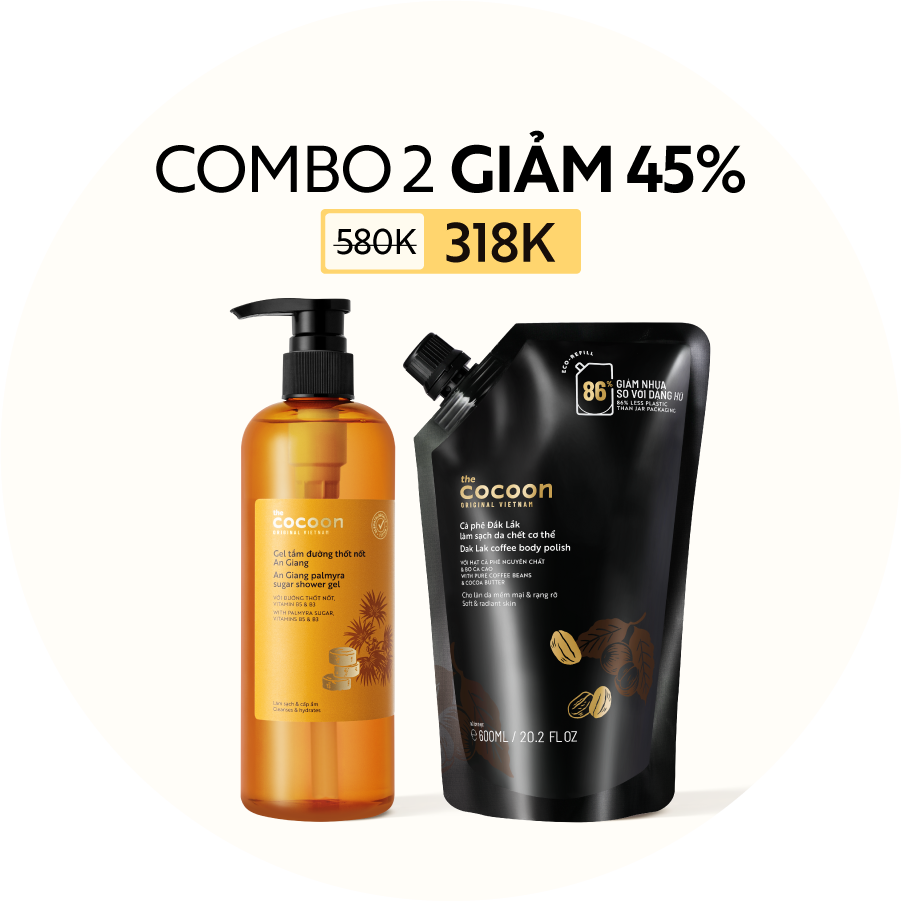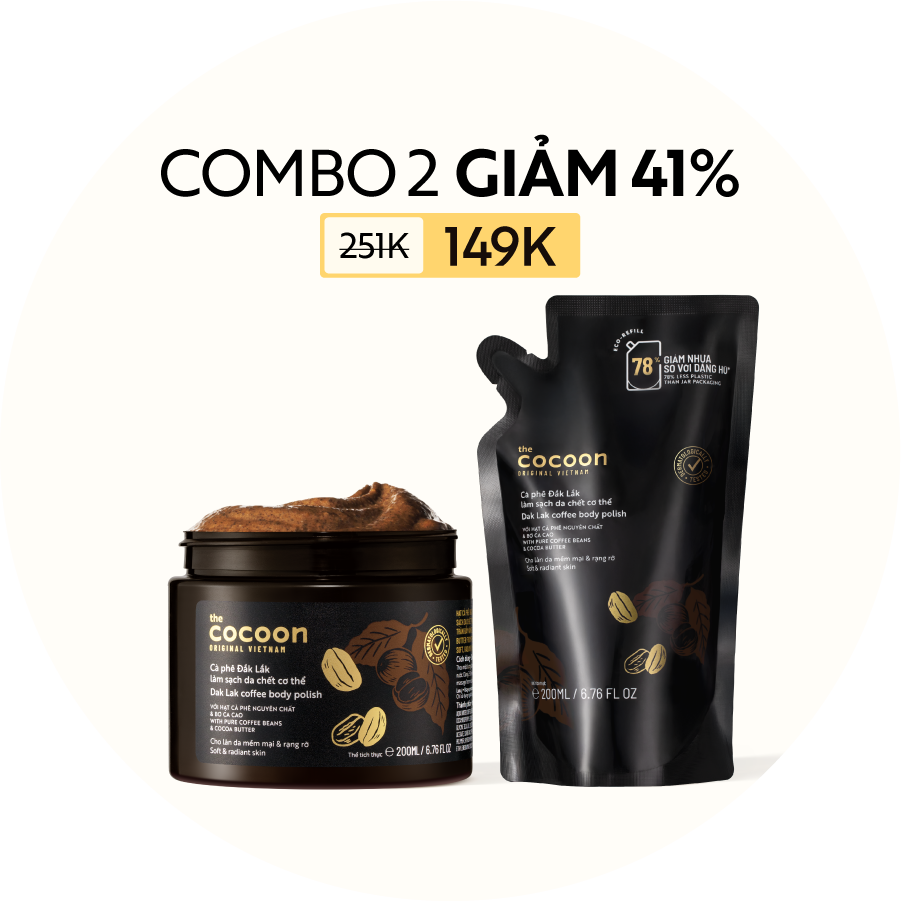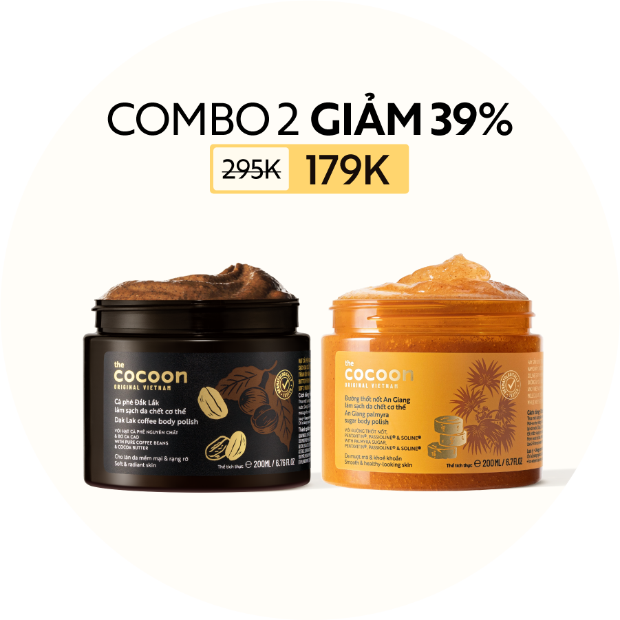 COMBO Tẩy da chết cơ thể cà phê Đắk Lắk 200ml + Tẩy da chết cơ thể đường thốt nốt An Giang Cocoon 200ml