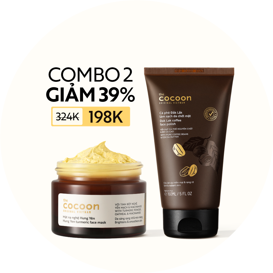 COMBO Mặt nạ nghệ Hưng Yên 30ml + Cà phê Đắk Lắk làm sạch da chết mặt 150ml