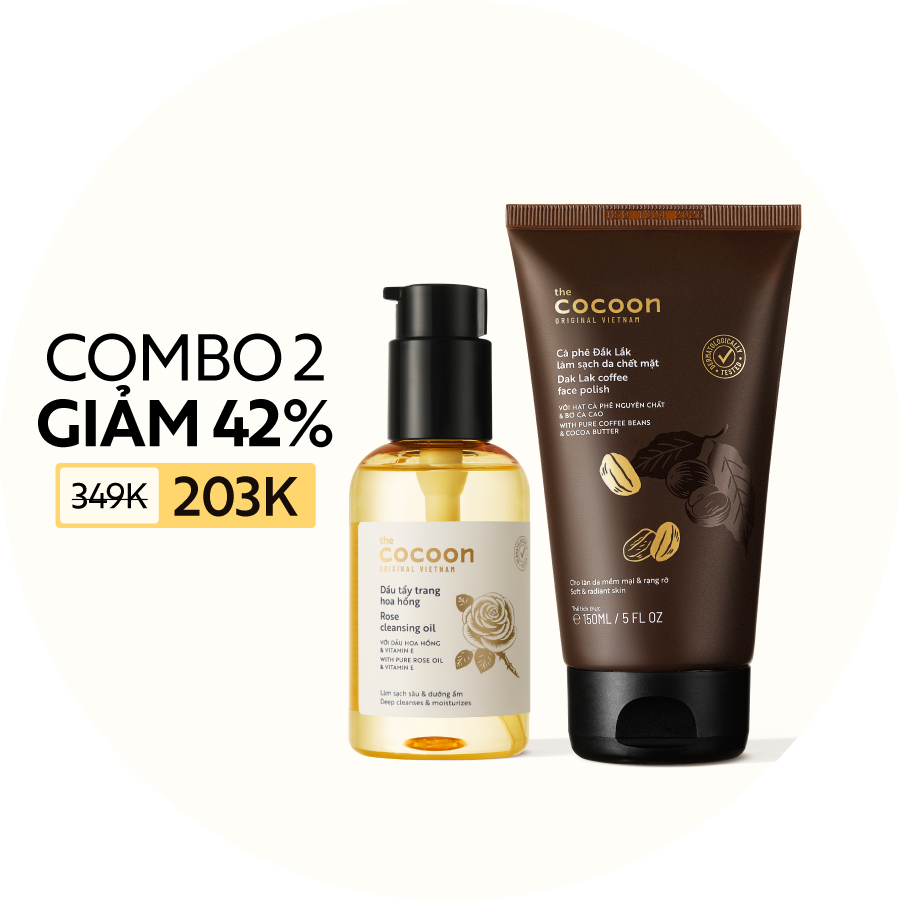 COMBO Dầu tẩy trang hoa hồng 140ml + Tẩy da chết mặt cà phê Đắk Lắk 150ml