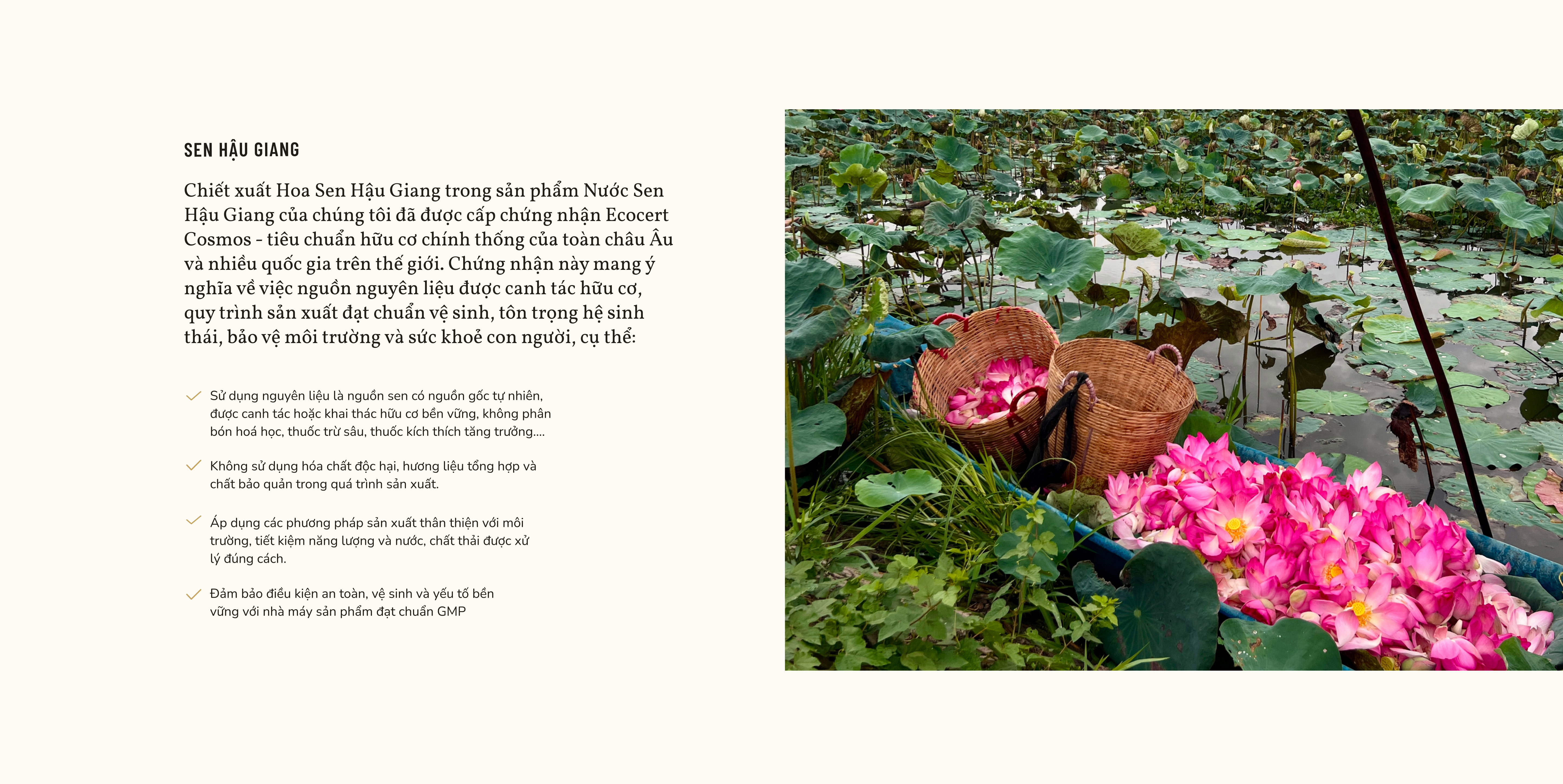 Nhờ hàm lượng các flavonoid cao, chiết xuất sen có tác dụng hạn chế các gốc tự do sinh ra bởi tia UV và các căng thẳng từ môi trường. Ngoài ra, trong chiết xuất hoa sen có các loại đường như fructose và glucose nên có đặc tính giữ ẩm cao, hỗ trợ làm mềm và làm dịu làn da nhạy cảm.