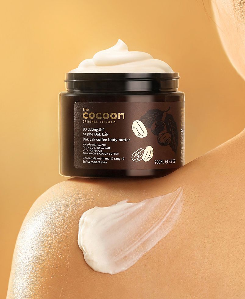 Dầu cà phê Đắk Lắk rất giàu cafein, kết hợp với dầu mù u và bơ cacao, tất cả hòa quyện nên một thể bơ sánh mịn giúp dưỡng ẩm, làm mềm và chống oxi hóa, mang lại làn da cơ thể luôn mượt mà, tươi mới rạng rỡ.